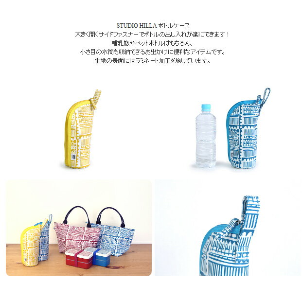 2個までメール便 【ネコポス】可STUDIO HILLA ボトルケース 大きく開くサイドファスナーでボトルの出し入れが楽にできます! 哺乳瓶やペットボトルはもちろん、 小さ目の水筒も収納できるお出かけに便利なアイテムです。